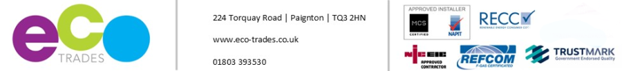 Eco Trades were extremely accommodating to our individual requirements. They installed our new heat pump to our great satisfaction, and they were quick and ready to answer all our questions. Would recommend them highly for their service.